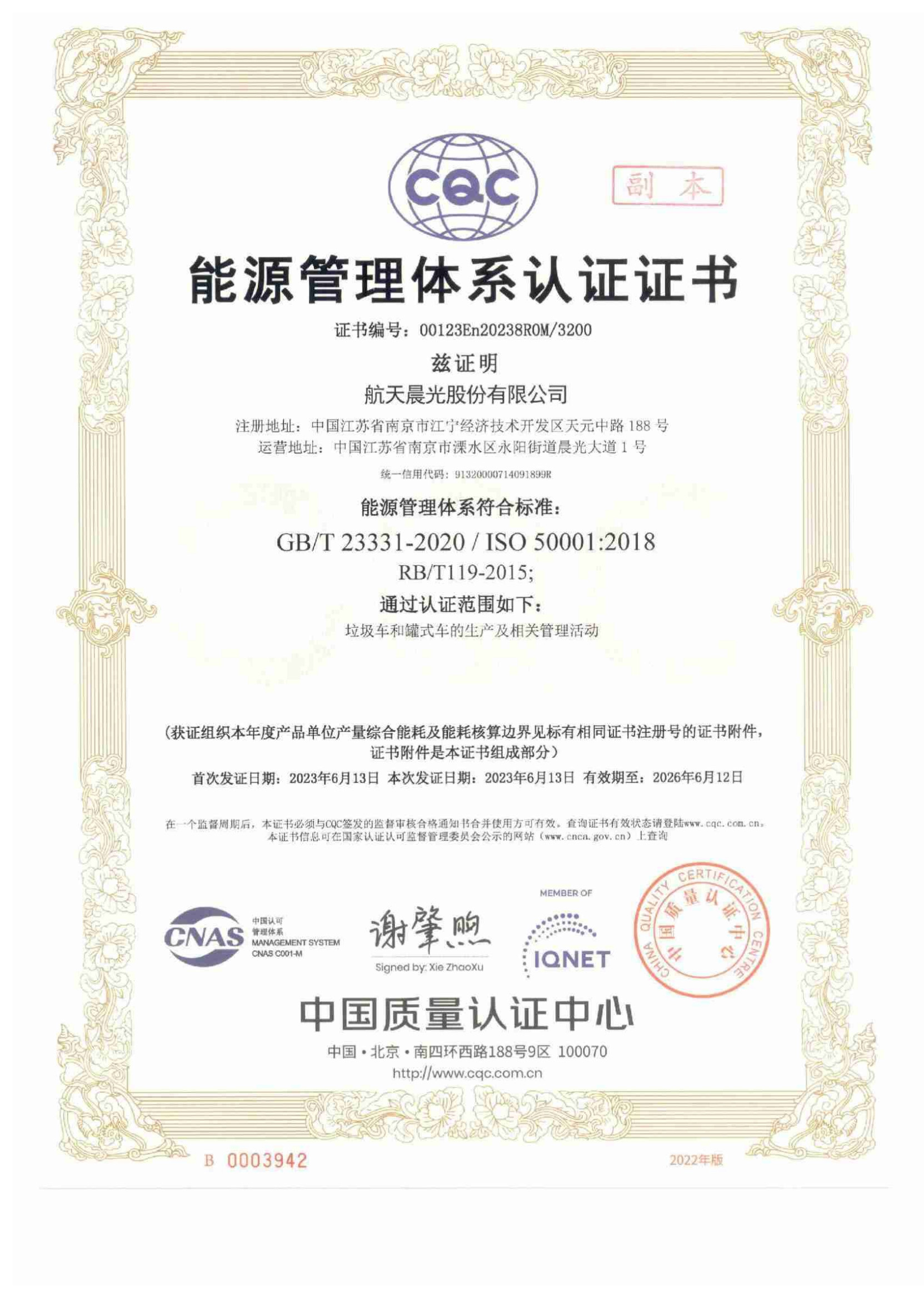能源管理體系認(rèn)證證書