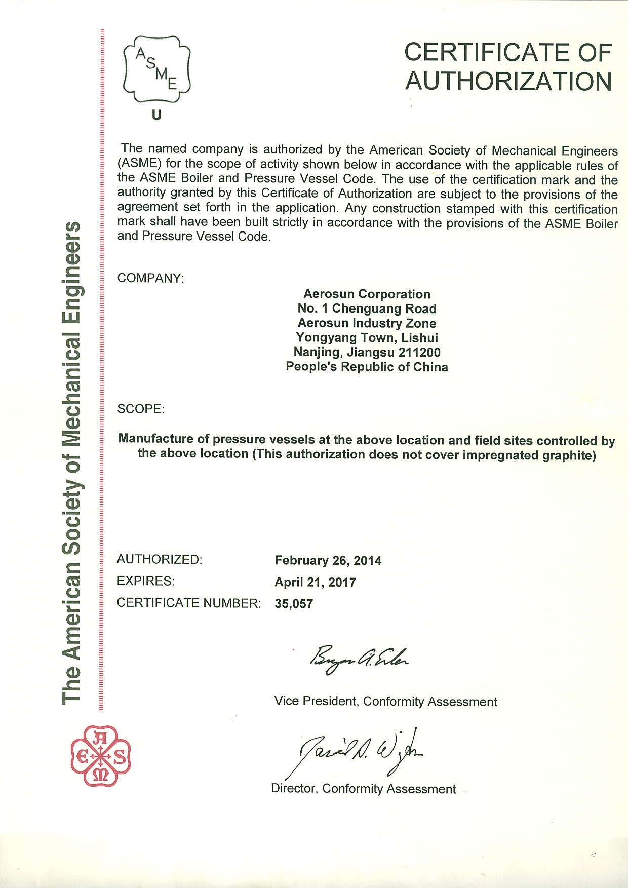 ASME U2證書